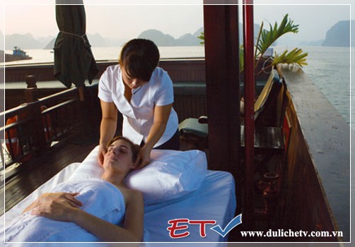 Chèo thuyền kayak quanh làng chài hoặc bơi lội, Tắm nắng trên boong tàu, massage thư giãn…