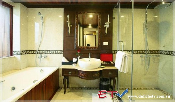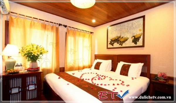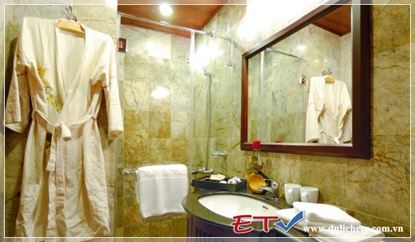 Deluxe Room: tiêu chuẩn quốc tế, rộng 16m2, phòng đôi hoặc đơn, nội thất gỗ sang trọng, tắm nóng lạnh, điều hòa 2 chiều, nhà tắm bằng đá cẩm thạch, hệ thống phát thanh trong phòng tắm.