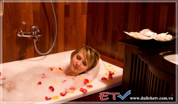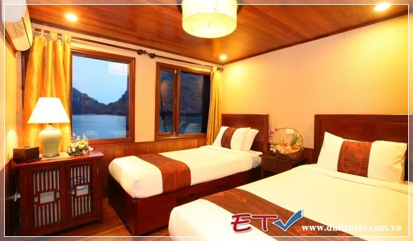 Phòng Suite: tiêu chuẩn quốc tế, ban công riêng, rộng 19m2, phòng đôi hoặc đơn, nội thất gỗ sang trọng, tắm nóng lạnh, điều hòa 2 chiều, nhà tắm bằng đá cẩm thạch, hệ thống phát thanh trong phòng tắm.