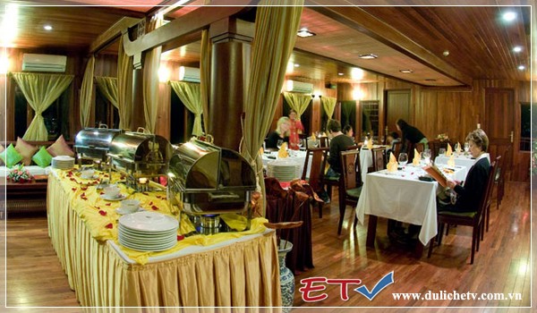 09.30: Quý khách sẽ được phục vụ bữa ăn sang tai nhà hàng. Sau khi ăn sáng quí khách sẽ thanh toán hóa đơn đồ uống và các dịch vụ sử dụng trên du thuyền.